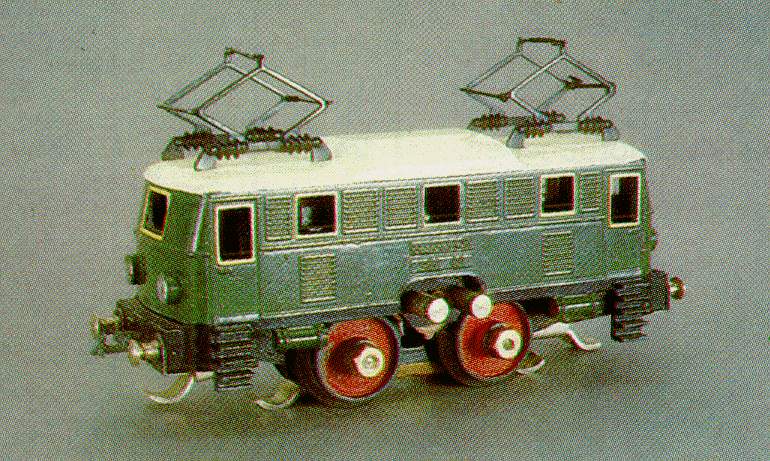 | Gehäuse und die vier Druckzylinder grün, Dach: elfenbeinfarbig. Zwei eingesteckte Pantographen aus gestanztem Stahlblech ohne Funktion. Fenster mit gelbem Rahmen, Gehäuseunterkante, Pufferbohle, Treppen und Fahrgestell schwarz. Je zwei imitierte Stirnlampen. Die rot ausgelegten Scheibenräder sind mit auf die Achsen aufgeschraubten Muttern befestigt.